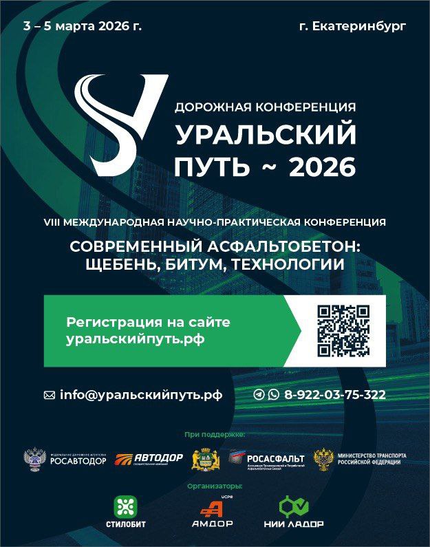 В Екатеринбурге состоится 8-я научно-практическая дорожная конференция «Уральский путь-2026»